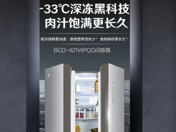 晶弘十字對(duì)開(kāi)門冰箱BCD-421WPQG閃爍銀